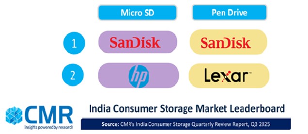 - Pen Drives: SanDisk leads with an impressive 54% market share in Q3 2025, followed by Lexar at 19% of shipments.
